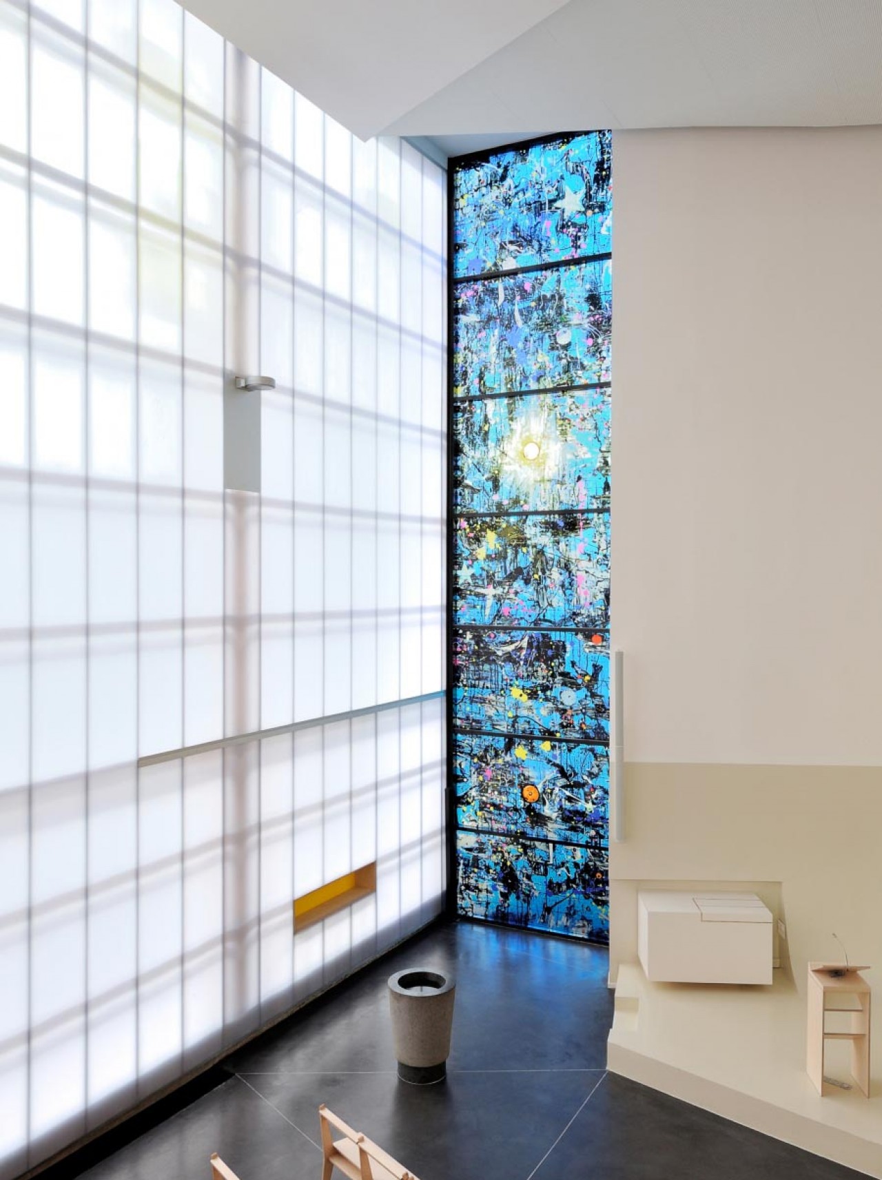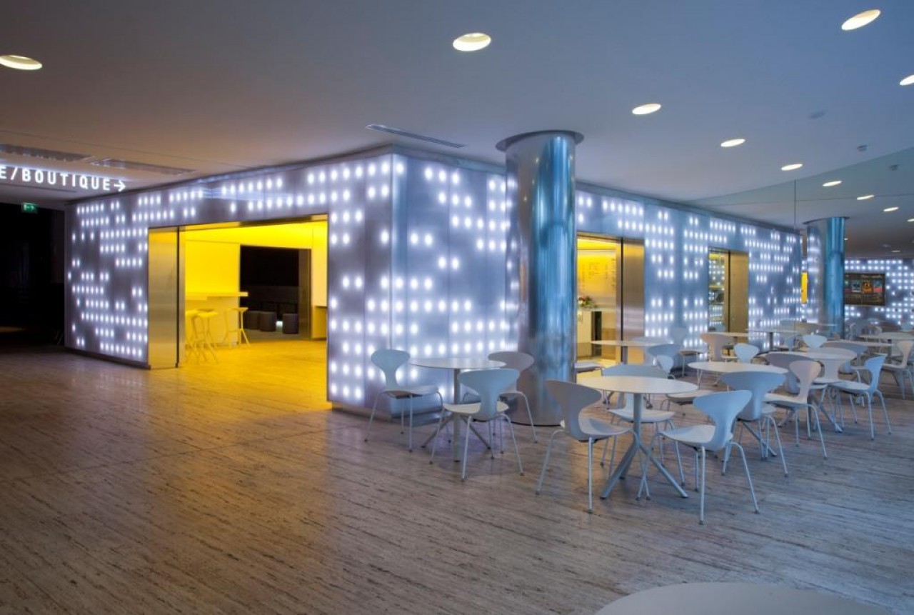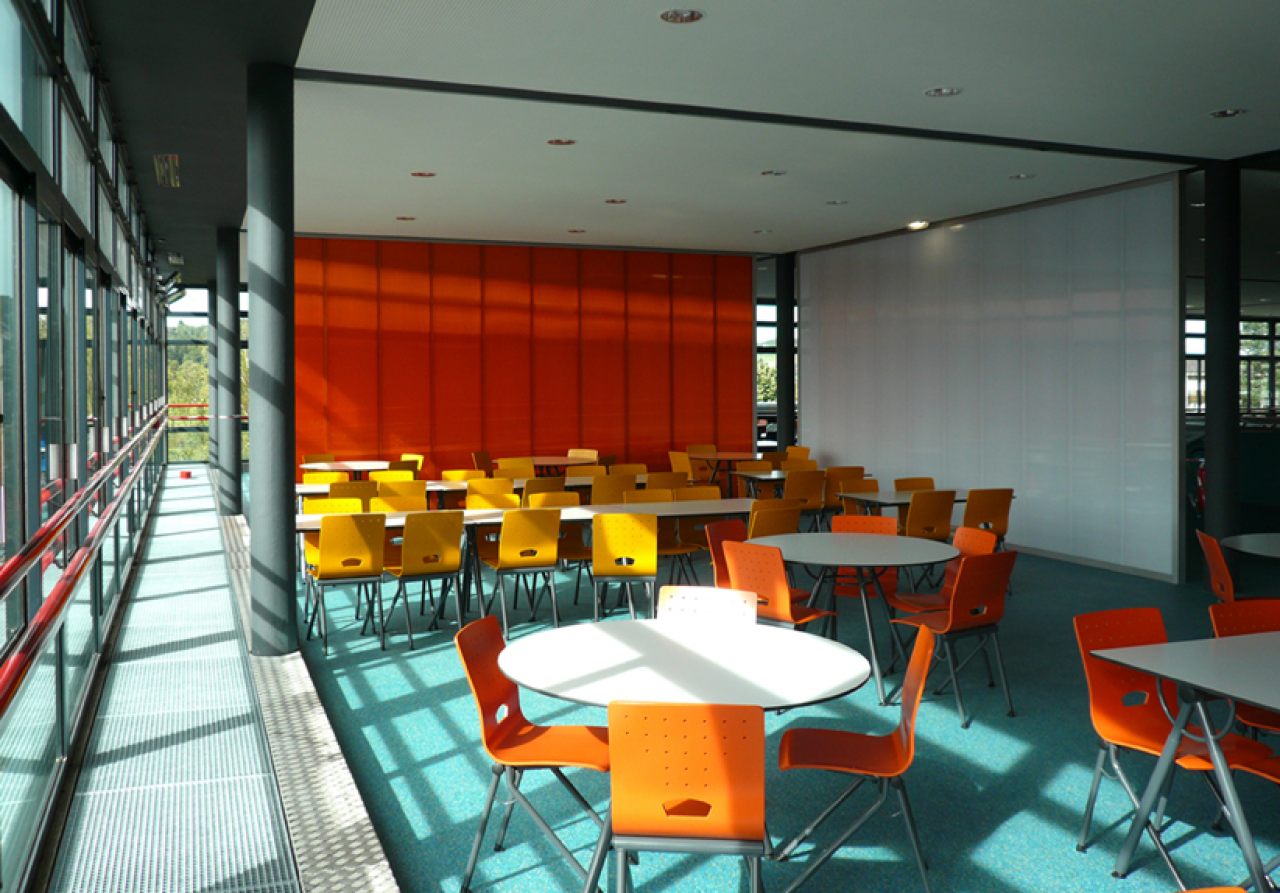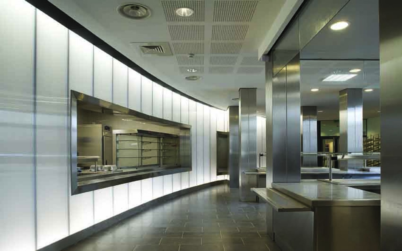 Interior . Restaurante Universitario. SCP Beguin & Macchini, D.E.N.S.A.I.S Arquitectos. Francia Danpalon 16mm Hielo 222m2