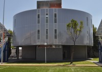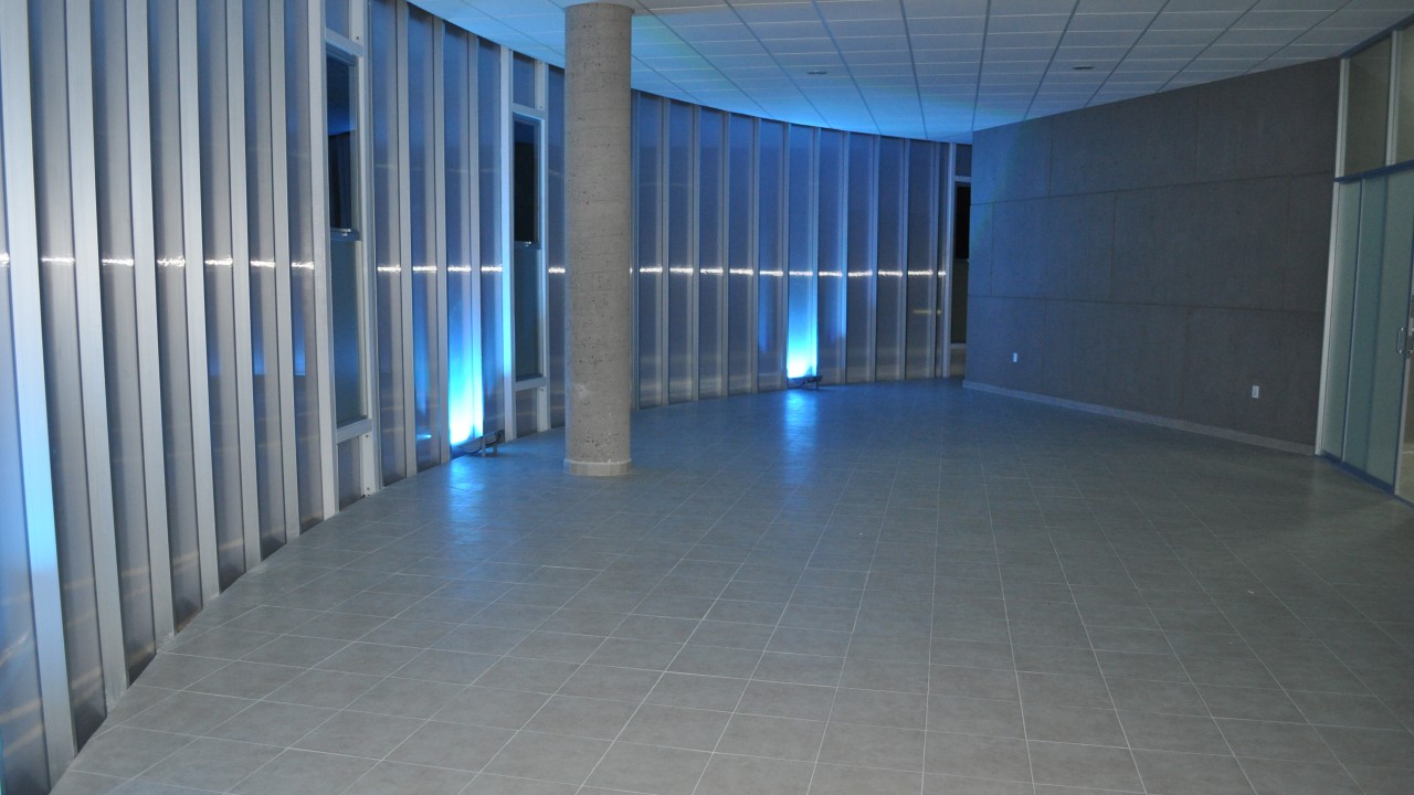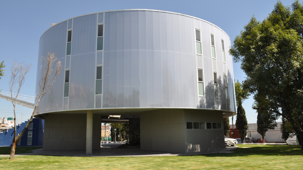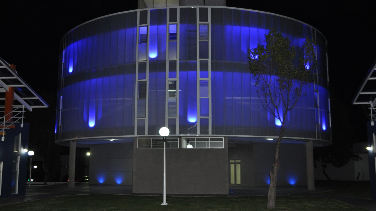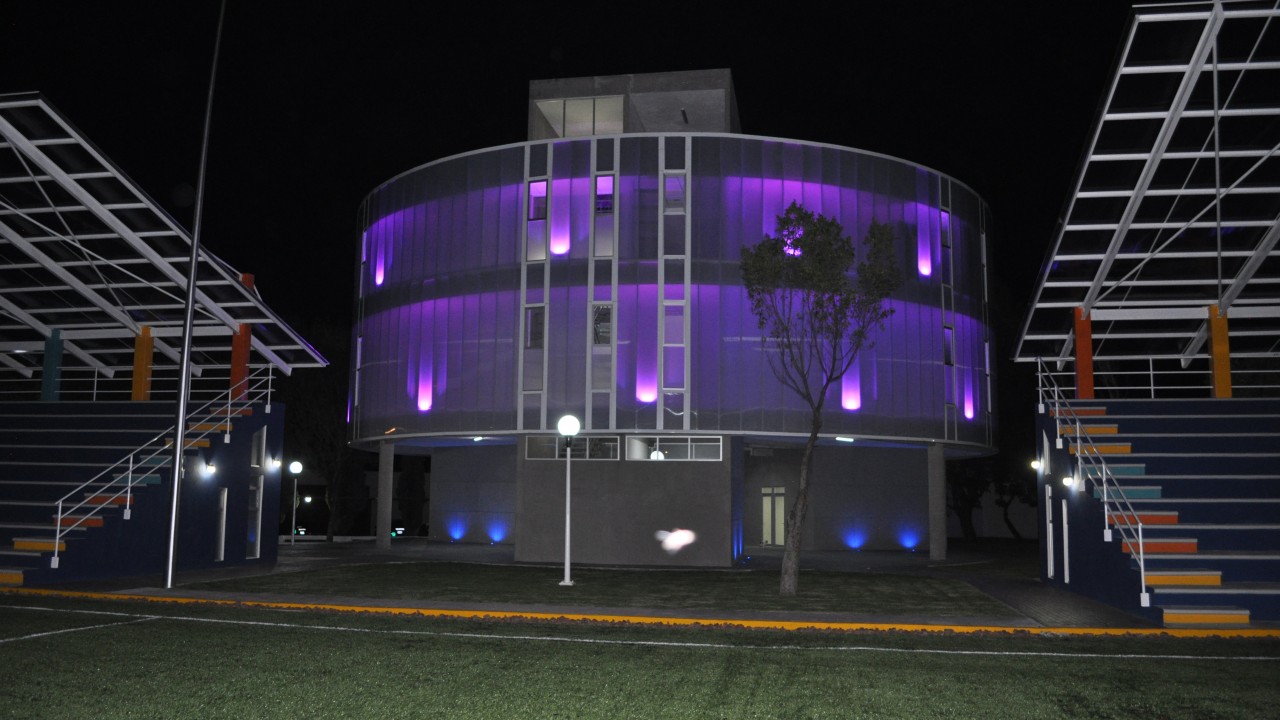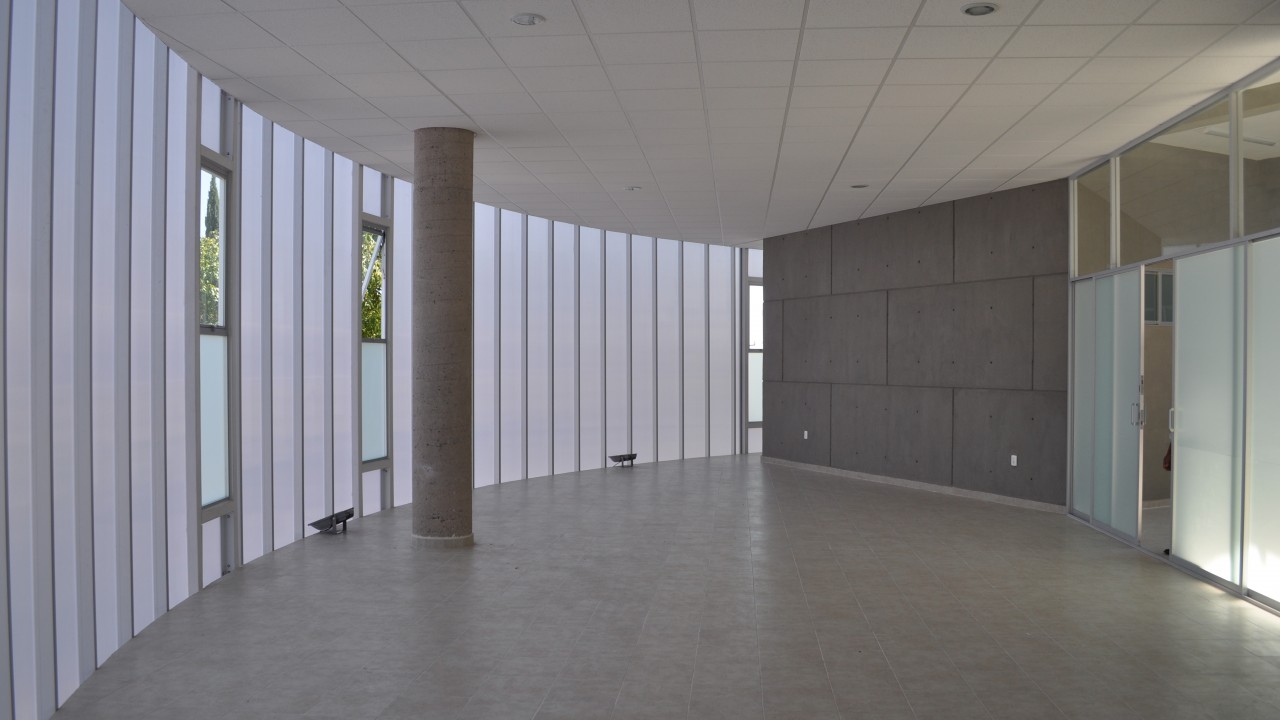 La fachada con una sola piel de piezas que coinciden exactamente con la estructura de concreto y no necesita recubrimiento. Convencimos al cliente de utilizar un policarbonato de última generación el Danpalon. Este material, compuesto por tres celdas aislantes, logra el confort térmico del ladrillo sin perder luminosidad. y por otro lado evadiendo la radiación ultravioleta, el interior se ilumina naturalmente durante el día, ahorrando energía eléctrica; y por su ligereza, reduciendo cargas estructurales y tiempos de construcción y mano de obra.