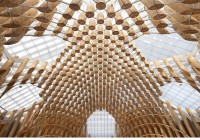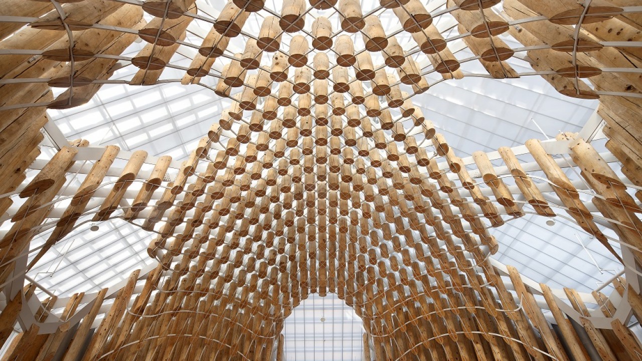 La forma de los lucernarios es semiesférica, tal y como se puede encontrar en estructuras de la arquitectura renacentista. Esta forma representa el mundo. En los extremos, los lucernarios están sostenidos por troncos de cedro rojo. Todos los cortes de madera están en posición vertical, como si fueran árboles de un bosque. Son 834 piezas, diferentes entre sí, que parecen contar una historia mientras cumplen la función de ser la estructura que sostiene a los lucernarios.